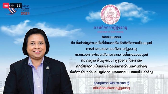 กระทรวง พม.โดยกรมกิจการผู้สูงอายุ ร่วมรับรางวัลองค์กรต้นแบบด้านสิทธิมนุษยชน ประจำปี 2564