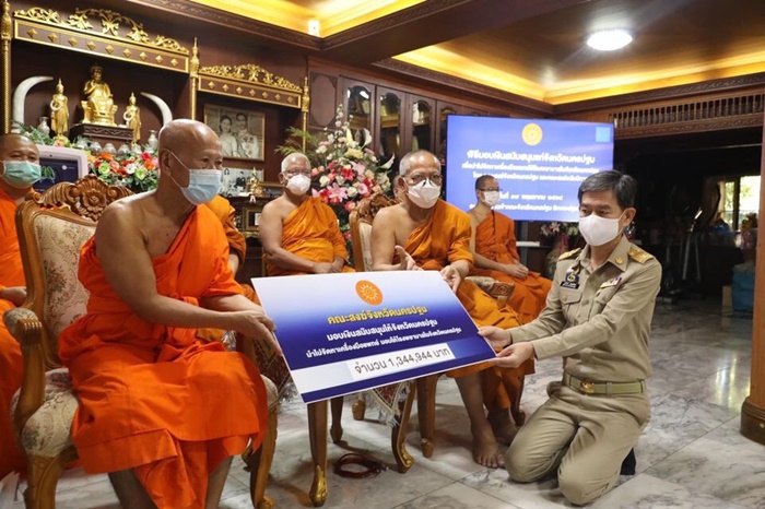 คณะสงฆ์จังหวัดนครปฐม ร่วมกับผู้มีจิตศรัทธามอบเงินสนับสนุนจังหวัด เพื่อส่งมอบรพ.สนาม