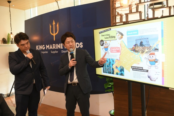 คิงมารีน ฟู้ดส์ ธุรกิจนำเข้าวัตถุดิบอาหารทะเล อาหารแปรรูป หนึ่งในเครือ เซ็น คอร์ปอเรชั่น กรุ๊ป จำกัด (มหาชน) ร่วมกับบริษัท ฮ๊กโกะ เกียวเร็น จำกัด ธุรกิจส่งออกวัตถุดิบอาหารทะเลจากญี่ปุ่น จัดกิจกรรม Taste of Scallop, Taste of Japan ชูวัตถุดิบยอดฮิต หอยโฮตาเตะพรีเมียมที่นำเข้าจากญี่ปุ่น โดย ‘กลุ่มอาหารทะเล’ นอกจากปลาแซลมอนที่เป็นวัตถุดิบที่ถูกนำเข้าเป็นอันดับต้น ๆ เนื่องจากได้รับความนิยมจากผู้บริโภคในไทยเป็นอย่างมาก แต่สิ่งที่น่าสนใจไม่แพ้กันคือวัตถุดิบ หอยโฮตาเตะ ที่มีความต้องการของตลาดที่สูงขึ้น โดยในปี 2566 ที่ผ่านมา คิงมารีน ฟู้ดส์ มีอัตราการนำเข้าวัตถุดิบหอยโฮตาเตะมากกว่า 100% เมื่อเทียบกับช่วงเดียวกันของปีก่อน และในปี 2567 คาดว่าจะมีการนำเข้าที่มากขึ้นอีกกว่าเท่าตัวเช่นเดิมคุณธีรทัศน์ บำเหน็จพันธุ์ กรรมการผู้จัดการ และคุณณัฐฐศศิ บำเหน็จพันธุ์ รองกรรมการผู้จัดการ บริษัท คิงมารีน ฟู้ดส์ จำกัด เผยว่า “ทางบริษัทให้ความสำคัญกับการคัดเลือกวัตถุดิบในทุกประเภท จากแหล่งนำเข้าวัตถุดิบที่ดีที่สุด คุณภาพของวัตถุดิบที่มีมาตรฐาน ราคาที่เหมาะสม และคำนึงถึงปัจจัยการผลิตในปริมาณที่เพียงพอต่อความต้องการของตลาดเป็นสำคัญ ซึ่งกลุ่มลูกค้าหลักของทางบริษัท คือกลุ่มร้านอาหารในประเทศไทย สูงถึง 70% รองลงมาคือกลุ่มธุรกิจค้าปลีก อาทิ Department Store, Hypermarket, Supermarket และกลุ่มธุรกิจโรงแรม ซึ่งล่าสุดก็มีการจัดส่งสินค้าเพื่อวางจำหน่ายที่ศูนย์ค้าส่ง Go Wholesale ทุกสาขาด้วย ทั้งนี้เพื่อเป็นการขยายฐานลูกค้าในกลุ่ม B2B และสร้างการรับรู้เกี่ยวกับวัตถุดิบหอยโฮตาเตะที่นำเข้าจากญี่ปุ่นให้มากยิ่งขึ้น จึงเป็นที่มาของการจัดกิจกรรม Taste of Scallop, Taste of Japan พบปะผู้ประกอบการในไทยกว่า 25 ราย โดยได้รับเกียรติจาก คุณฮิเดนาริ ยามายะ ประธานกรรมการบริษัท และคุณนาโอยะ ฟูจิคามิ ผู้จัดการ บริษัท ฮ๊กโกะ เกียวเร็น จำกัด ซึ่งเป็นผู้เชี่ยวชาญจากบริษัทส่งออกวัตถุดิบที่ญี่ปุ่นที่จะมาแชร์ความรู้และประสบการณ์ทางด้านวัตถุดิบหอยโฮตาเตะที่มีมากกว่า 74 ปี พิเศษเฉพาะในงาน นอกจากนี้ยังมีการรังสรรค์ 7 เมนูพิเศษ เพื่อชูจุดเด่นของวัตถุดิบหลัก หอยโฮตาเตะ สำหรับผู้ประกอบการที่กำลังมองหาไอเดียใหม่ ๆ ในการรังสรรค์เมนูอาหารด้วย 7 เมนูพิเศษที่ได้รับแรงบันดาลใจจากวัฒนธรรมญี่ปุ่น ชูวัตถุดิบหลัก หอยโฮตาเตะ เทรนด์วัตถุดิบยอดฮิตนำเข้าจากญี่ปุ่นโฮตาเตะที่ดีที่สุดต้องนำเข้าจากฮอกไกโดเท่านั้น เพราะเป็นแหล่งวัตถุดิบที่อุดมสมบูรณ์ ทำให้คุณภาพของวัตถุดิบดี มีสีขาวนวลเป็นธรรมชาติ มีรสชาติหวาน เน