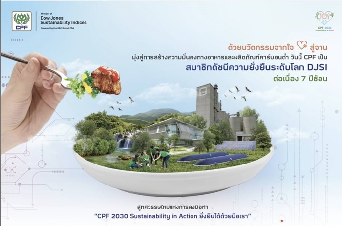 ดัชนี DJSI เป็นหนึ่งในมาตรฐานสูงสุดสำหรับการประเมินความยั่งยืนองค์กรระดับโลก โดยพิจารณาจากผลการดำเนินงานในมิติเศรษฐกิจ สังคม และสิ่งแวดล้อม ซึ่งการประกาศผลปีนี้ ซีพีเอฟ ยังคงรักษาความโดดเด่นด้านการบริหารนวัตกรรม (Innovation Management) ด้านสุขภาพและโภชนาการ (Health & Nutrition) ด้านการสูญเสียอาหารและขยะอาหาร (Food Loss & waste) ซึ่งเป็นความมุ่งมั่นของบริษัทฯในการบรรเทาการเปลี่ยนแปลงสภาพภูมิอากาศ (Climate Change) ร่วมกับประชาคมโลก และเป้าหมายการยกระดับการบริโภคที่ยั่งยืนจากนวัตกรรมอาหารเพื่อสุขภาพที่ดีเป็นมิตรกับสิ่งแวดล้อม