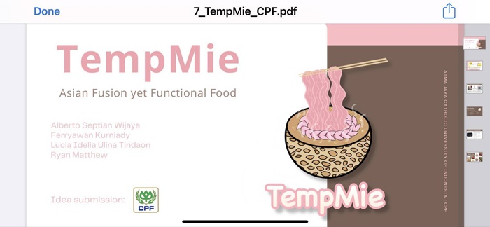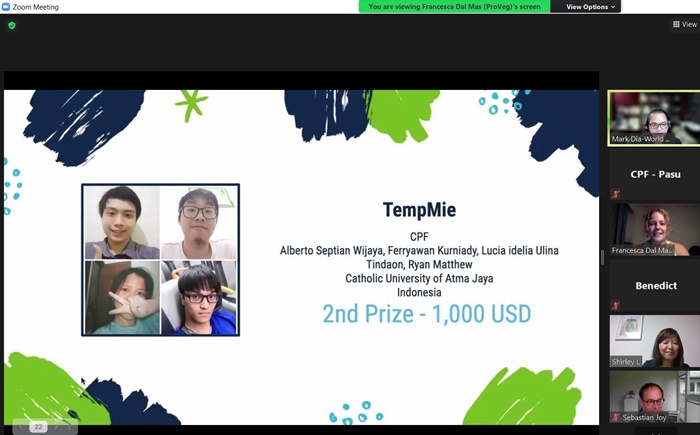 ส่วนทีม TempMie จากประเทศอินโดนีเซีย ได้อันดับที่ 2 นำเสนอแนวคิดนวัตกรรมบะหมี่กึ่งสำเร็จรูปเพื่อสุขภาพสำหรับ vegan (instant vegan noodle) ที่ทำจากแป้งถั่วเหลืองหมักแบบพื้นเมืองอินโดนีเซีย (Tempeh powder) สารสกัดเข้มข้นจากดอกไม้ Kecombrang และน้ำซุปเห็ดหอมชิตาเกะของญี่ปุ่น (Shiitake Broth) เป็นการผสมผสานวัฒนธรรมของอินโดนีเซียเข้ากับญี่ปุ่น “ทุกคน กล้าคิด กล้าพูด กล้าลงมือทำและพร้อมค้นหาความจริง ซึ่งเป็นคุณลักษณะของนักวิจัยรุ่นใหม่ นอกจากแนวคิดของนักวิจัยกลุ่มนี้จะตอบโจทย์ความต้องการของตลาดเรื่องโปรตีนเนื้อสัตว์จากพืชแล้ว ยังเป็นนวัตกรรมอาหารสร้างภูมิคุ้มกันเพื่อสุขภาพที่ดี โดยเฉพาะในช่วงการระบาดของโรคโควิด 19” ดร.ลลนา กล่าว สำหรับทีมชนะเลิศอันดับที่ 1 Food Tech Chula เป็นการรวมตัวกันของนิสิตปริญญาเอก คือ นายนุติ หุตะสิงห และ นางสาววรัญญา เตชะสุข และนิสิตปริญญาโท คือ นายณัฐชนน สร้างสมจิตร์ จากภาควิชาเทคโนโลยีทางอาหาร คณะวิทยาศาสตร์ จุฬาลงกรณ์มหาวิทยาลัย