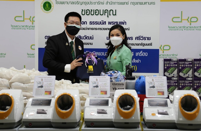 วันที่ 15 กรกฎาคม 2564 เวลา 10.30 น.ศาสตราจารย์ นฤมล ภิญโญสินวัฒน์ รัฐมนตรีช่วยว่าการกระทรวงแรงงาน พร้อมด้วย ร้อยเอก ธรรมนัส พรหมเผ่า รัฐมนตรีช่วยว่าการกระทรวงเกษตรและสหกรณ์ และนางสาวธนพร ศรีวิราช ประจำสำนักเลขาธิการนายกรัฐมนตรี ร่วมมอบครุภัณฑ์และวัสดุทางการแพทย์ เพื่อใช้ในการดูแลผู้ป่วยโรคโควิด-19 และเป็นกำลังใจให้บุคลากรของโรงพยาบาลเจริญกรุงประชารักษ์ สำนักงานการแพทย์ กรุงเทพมหานคร ศาสตราจารย์ นฤมล กล่าวว่า จากสถานการณ์การแพร่ระบาดของโควิด-19 ตั้งแต่ช่วงเดือนเมษายนที่ผ่านมา ประเทศไทยมีผู้ติดเชื้อเพิ่มขึ้นจำนวนมาก ทำให้โรงพยาบาลเริ่มขาดแคลนอุปกรณ์การแพทย์ในการรับมือกับวิกฤติโควิด ในวันนี้ตนเองพร้อมด้วยรัฐมนตรีช่วยว่าการกระทรวงเกษตรและสหกรณ์ จึงได้เดินทางไปมอบครุภัณฑ์และวัสดุทางการแพทย์ให้แก่โรงพยาบาลเจริญกรุงประชารักษ์ เพื่อร่วมเป็นส่วนหนึ่งในการช่วยเหลือชีวิตผู้ที่ติดเชื้อที่เพิ่มมากขึ้นอย่างต่อเนื่อง![]()