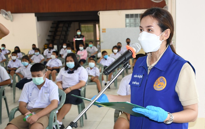จากนั้น ได้เดินทางไปเยี่ยมสถานที่แยกกักตัวในชุมชน : CI ที่อาคารอเนกประสงค์เทศบาลตำบลหนองใหญ่ อำเภอหนองใหญ่ จังหวัดชลบุรี ซึ่งรองรับผู้ป่วยติดเชื้อโควิด-19 ในระดับสีเขียวได้ 80 เตียง ปัจจุบันดูแลผู้ป่วยอยู่จำนวน 22 ราย