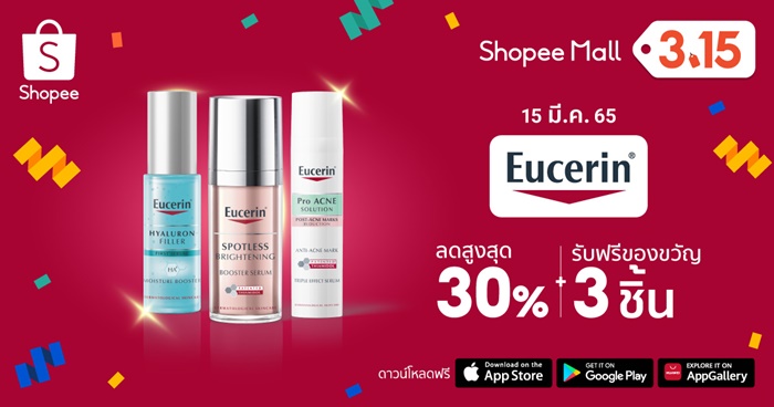 คืนความมั่นใจ ด้วยความสวย สุขภาพดีตั้งแต่เส้นผมจรดผิวกาย พร้อมความคุ้มค่าที่มากกว่าด้วยโปรโมชั่นสุดเลอค่าจาก ‘ยูเซอริน’ ในแคมเปญ Shopee 3.15 Consumer Day คืนกำไรให้นักช้อป ด้วยโปรโมชั่นลดสูงสุด 50% และของแถมเพิ่มสูงสุด 4 ชิ้น* รวมมูลค่า 1,460 บาท หรือเอ็นจอยช้อปปิ้งไปสุดๆ กับ พริวิเลจสุดปังเมื่อชำระเงินผ่าน ShopeePay ตั้งแต่วันนี้จนถึงวันที่ 15 มีนาคม 2565 พลาดแล้วจะเสียใจ! อย่าลืมไปช้อปกับโปรฯ ดีๆ ที่ยูเซอรินมามอบให้ใน Shopee 3.15 Consumer Day คืนกำไรให้นักช้อป พร้อมกดติดตามเพื่อไม่ให้พลาดข่าวสารจาก Eucerin Official Store บน Shopee Mall ได้ที่ https://shopee.co.th/eucerin_official_store