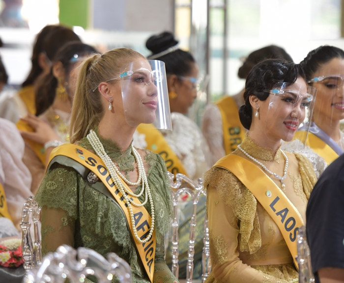 บ่ายวันนี้ (17 มีนาคม 2564) ณ ห้องโถงธนะรัชต์ อาคาร ททท. นายพิพัฒน์ รัชกิจประการ รัฐมนตรีว่าการกระทรวงการท่องเที่ยวและกีฬา นายยุทธศักดิ์ สุภสร ผู้ว่าการการท่องเที่ยวแห่งประเทศไทย (ททท.) พร้อมด้วยผู้บริหาร ททท. ให้การต้อนรับคณะผู้บริหารกองประกวดและผู้เข้าประกวดมิสแกรนด์อินเตอร์เนชั่นแนล 2020) จำนวน 63 คน ซึ่งเป็นตัวแทนจากประเทศต่าง ๆ ทั่วโลก พร้อมแสดงความชื่นชมการดำเนินการจัดประกวดที่เป็นไปตามมาตรฐานสาธารณสุขของไทยอย่างเคร่งครัด และผ่านช่วงเวลากักตัว 14 วันมาได้ด้วยดี รวมถึงการจัดกิจกรรมที่สร้างสรรค์และผ่อนคลายให้คณะผู้เข้าประกวดได้ทำขณะที่กักตัว![]()