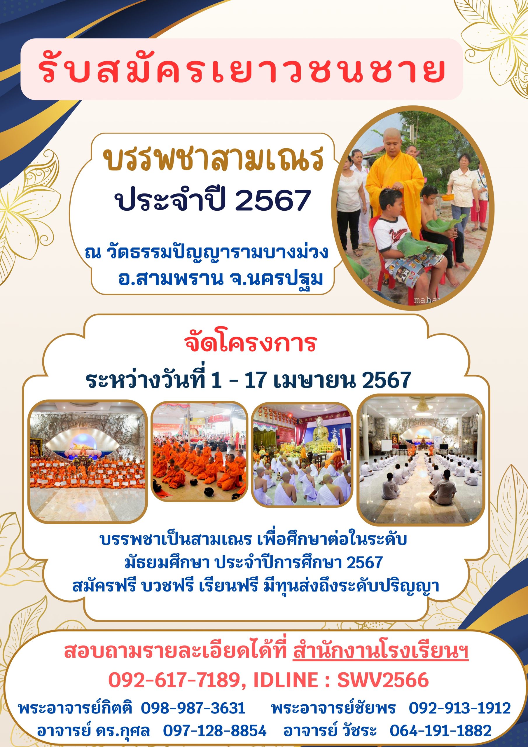 รับสมัครเยาวชนชาย บรรพชาเป็นสามเณร เพื่อศึกษาต่อในระดับมัธยมศึกษา ประจำปีการศึกษา 2567 (สมัครฟรี บวชฟรี เรียนฟรีตลอดหลักสูตร มีทุนส่งถึงระดับปริญญา)