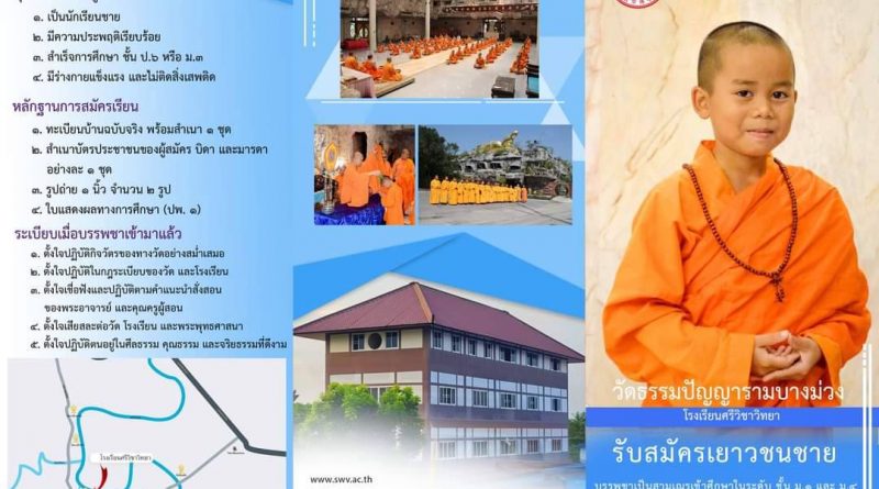 วัดธรรมปัญญารามบางม่วง เปิดรับเยาวชนชายบรรพชาเป็นสามเณร