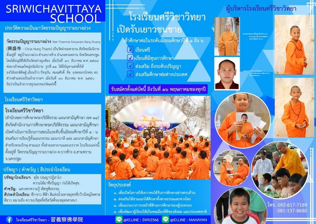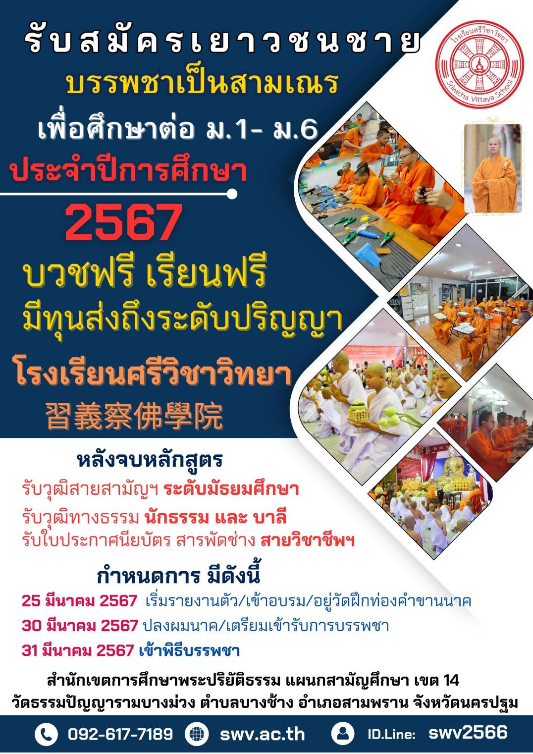 เปิดรับสมัครแล้ว ตั้งแต่วันนี้ ถึง 31 มีนาคม 2567 ณ โรงเรียนศรีวิชาวิทยา สำนักเขตการศึกษาพระปริยัติธรรม แผนกสามัญศึกษา เขต 14 วัดธรรมปัญญารามบางม่วง ตำบลบางช้าง อำเภอสามพราน จังหวัดนครปฐม