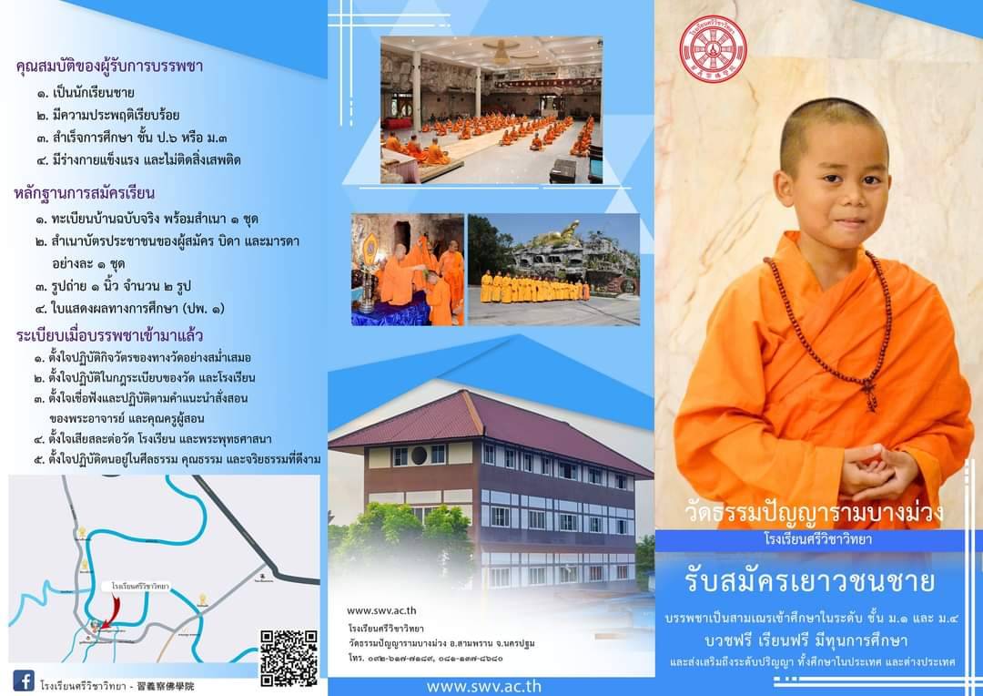 วัดธรรมปัญญารามบางม่วง เปิดรับเยาวชนชายบรรพชาเป็นสามเณร