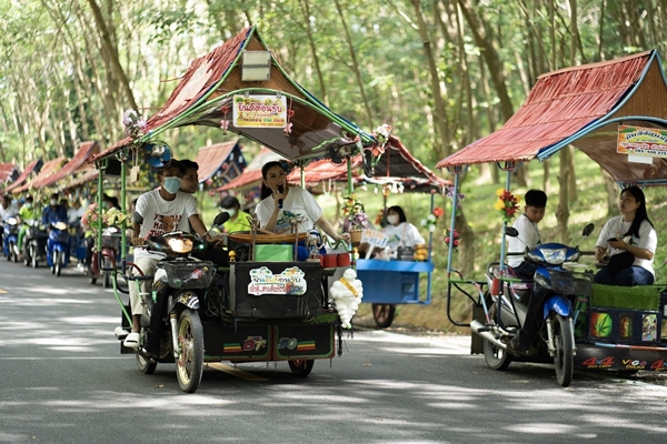 เหมือนฝัน คนข่าวช่อง 7HD เล่าเสริม “เป็นครั้งแรกที่ได้เดินทางด้วยพาหนะรถประจำถิ่นที่เรียกว่า ขนำติดล้อ ได้สัมผัสธรรมชาติใกล้ชิดตลอดเส้นทางไปไทรโอบรัก และพลาดไม่ได้ที่จะไว้พระขอพรสักการะเจดีย์ทอง สิ่งศักดิ์สิทธิ์ประจำชุมชน ได้ฟังเรื่องราวของหมู่เกาะสี่-เกาะห้าที่แปลกดีเพราะชาวบ้านเล่าว่าที่มาของชื่อเกาะมาจาก การมองเห็นเกาะที่ต่างมุมบางมุมจะเห็นเป็นเกาะ 4 เกาะ แต่หากมองอีกมุมตรงข้ามกันจะเห็นเป็น 5 เกาะนั่นเอง และยังเป็นแหล่งอารยธรรมโบราณอีกแห่งหนึ่งกลางธรรมชาติที่อุดมสมบูรณ์มาก ทริปนี้อิ่มสุข อิ่มท้อง อิ่มใจ และได้อิ่มบุญ ปิดท้ายด้วยกิจกรรมปล่อยลูกกุ้ง คืนสู่ธรรมชาติ เพื่อร่วมอนุรักษ์พันธ์สัตว์น้ำในพื้นที่ให้อยู่คู่ชุมชน ให้พวกเราหรือรุ่นลูกหลานเรามีอาชีพหรือเลี้ยงชีพได้ต่อไป”