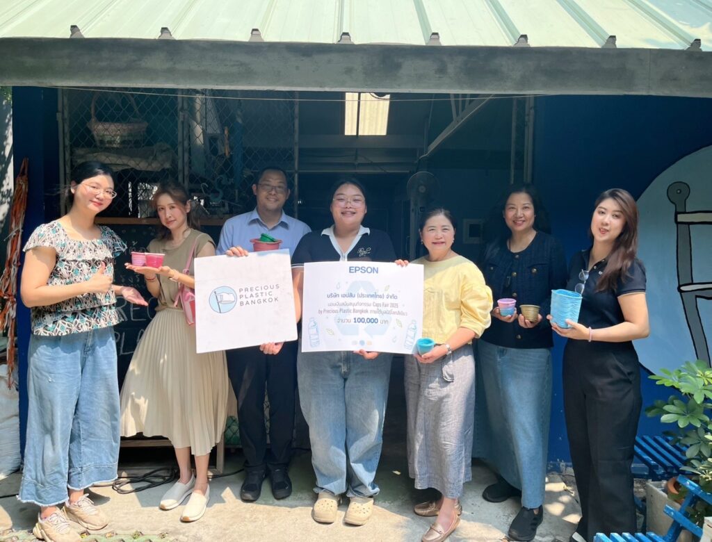ในกิจกรรมที่สอง เอปสันได้ร่วมสนับสนุนเงินจำนวน 100,000 บาท เพื่อสนับสนุนกิจกรรม Caps Fair 2025 ฝาแปลงร่าง ซึ่งจัดโดยพรีเชียสพลาสติกแบงค็อก (Precious Plastic Bangkok) ภายใต้มูลนิธิโลกสีเขียว พรีเชียสพลาสติกแบงค็อก เป็นองค์กรที่ทำงานร่วมกับชุมชม โรงเรียน และมหาวิทยาลัย เพื่อรวบรวมขยะพลาสติกและนำมารีไซเคิลให้กลายเป็นผลิตภัณฑ์ใหม่ ตอกย้ำความมุ่งมั่นของเอปสันในการสนับสนุนการลดการใช้พลาสติกและส่งเสริมระบบเศรษฐกิจหมุนเวียน (Circular Economy)