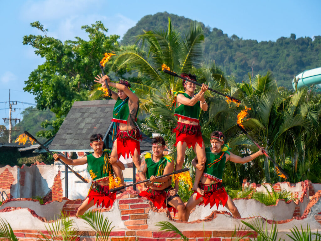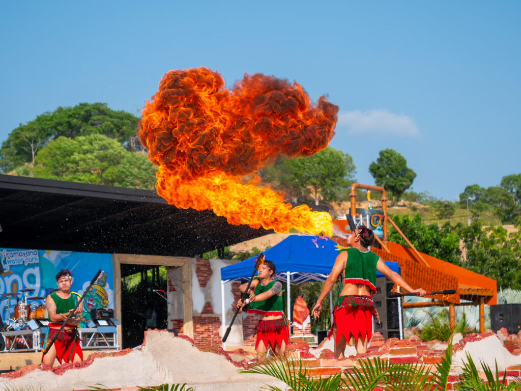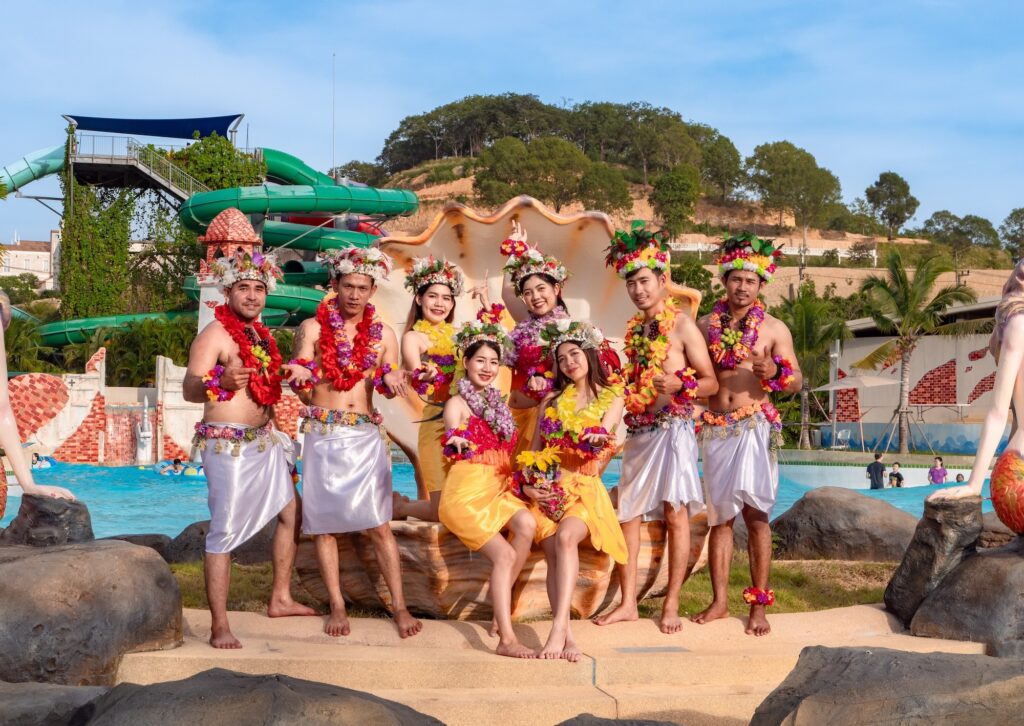 • เพลิดเพลินไปกับการแสดงเต้นลิมโบ และระบำฮาวายพ่นไฟสุดตระการตา ที่ Double Wave Pool