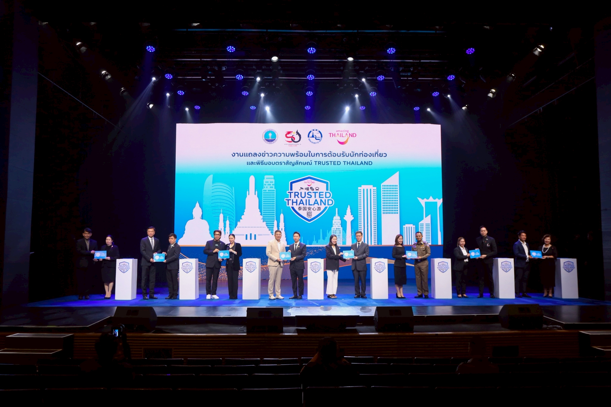 วันนี้ (13 พฤศจิกายน 2568) ณ โรงละครเคแบงก์สยามพิฆเนศ นำโดยนายอรรถกร ศิริลัทธยากร รัฐมนตรีว่าการกระทรวงการท่องเที่ยวและกีฬา นายหยาง เสี่ยวหลง ที่ปรึกษาแผนกวัฒนธรรม สถานเอกอัครราชทูตสาธารณรัฐประชาชนจีนประจำประเทศไทย นางสาวฐาปนีย์ เกียรติไพบูลย์ ผู้ว่าการ ททท. ร่วมผนึกกำลังหน่วยงานพันธมิตร ทั้งภาครัฐและเอกชน อาทิ กรมการท่องเที่ยว กรมอุทยานแห่งชาติ สัตว์ป่าและพันธุ์พืช กรมอนามัย ตำรวจท่องเที่ยว สภาอุตสาหกรรมท่องเที่ยวแห่งประเทศไทย สมาคมโรงแรมไทย หอการค้าไทย สมาคมผู้ค้าปลีกไทย สมาคมผู้ประกอบวิสาหกิจในย่านราชประสงค์ สมาคมสวนสนุกและสวนพักผ่อนหย่อนใจ รวมถึงพันธมิตรด้านแพลตฟอร์มท่องเที่ยวรายใหญ่ เช่น Trip.com Group, Agoda Services และ Grab Thailand ร่วมประกาศความพร้อมต้อนรับนักท่องเที่ยวและมอบตราสัญลักษณ์ “Trusted Thailand” ให้แก่สถานประกอบการที่เข้าร่วมโครงการ เพื่อยกระดับมาตรฐานความปลอดภัยและสร้างความเชื่อมั่นให้แก่นักท่องเที่ยวทั่วโลก