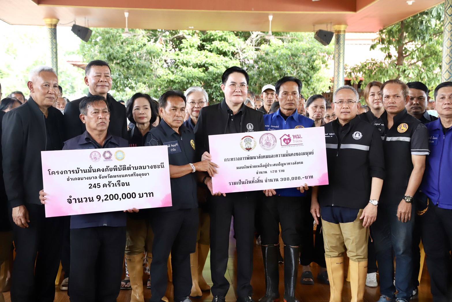เมื่อวันที่ 24 พฤศจิกายน 2568 ที่ผ่านมา นายอัครา พรหมเผ่า รัฐมนตรีว่าการกระทรวงการพัฒนาสังคมและความมั่นคงของมนุษย์ (รมว.พม.) ลงพื้นที่ ณ วัดโคกหิรัญ ตำบลบางชะนี อำเภอบางบาล จังหวัดพระนครศรีอยุธยา เพื่อพบปะเยี่ยมให้กำลังใจกลุ่มเปราะบาง อาทิ เด็ก ผู้สูงอายุ และคนพิการ รวมถึงประชาชนผู้ประสบอุทกภัย พร้อมทั้งรับฟังรายงานสถานการณ์ภัยพิบัติ และข้อเสนอของภาคประชาชนในการแก้ไขปัญหาภัยพิบัติในพื้นที่ตำบลบางชะนี อำเภอบางบาล อีกทั้งมอบงบประมาณโครงการแก้ไขปัญหาบ้านมั่นคงภัยพิบัติ , รถเข็นโยกและวีลแชร์สำหรับคนพิการ และ “ถุงฮีล(Heal)ใจ” เครื่องอุปโภคบริโภคที่จำเป็น