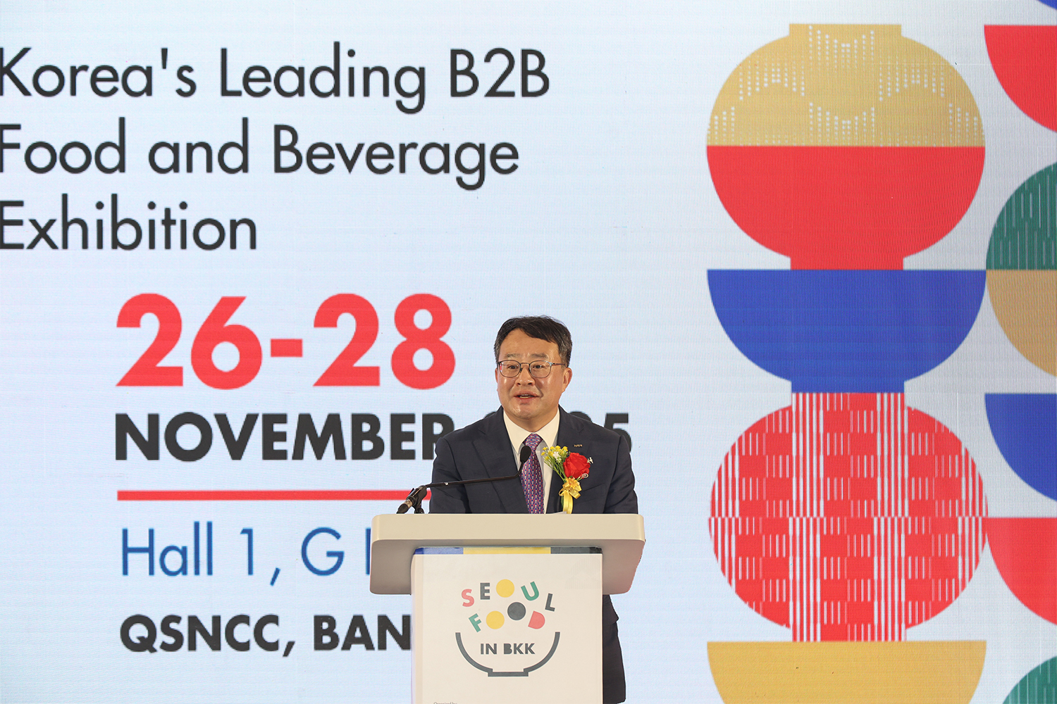 นายคู บนคยอง ผู้อำนวยการใหญ่ประจำภูมิภาคเอเชียตะวันออกเฉียงใต้และโอเชียเนีย สำนักงานส่งเสริมการค้าและการลงทุนเกาหลี (Korea Trade-Investment Promotion Agency : KOTRA) เปิดเผยว่า งาน SEOUL FOOD in Bangkok 2025 ในปีนี้ถือเป็นการขยายงาน “Seoul Food” สู่ต่างประเทศอย่างเป็นรูปธรรม และจะเป็นเวทีสำคัญในการขยายตลาด K-Food สู่ภูมิภาคอาเซียนอย่างกว้างขวางยิ่งขึ้น งาน Seoul Food นับเป็นหนึ่งในงานแสดงสินค้าอาหารที่ใหญ่ที่สุดในเอเชีย โดยงานที่จัดขึ้นเมื่อเดือนมิถุนายนที่ผ่านมา ณ KINTEX (ประเทศเกาหลีใต้) มีบริษัทร่วมแสดงสินค้ากว่า 1,639 แห่ง จาก 45 ประเทศ ทำสถิติสูงสุดเป็นประวัติการณ์