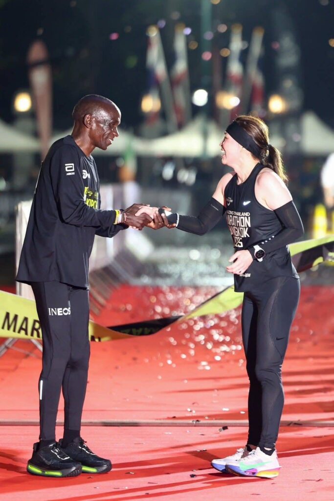 พระราชินี ทรงวิ่ง ฮาล์ฟมาราธอน ร่วมกับ เอเลียด คิปโชเก้ ทรงใช้เวลา ๒.๑๓ ชม. เข้าเส้นชัย