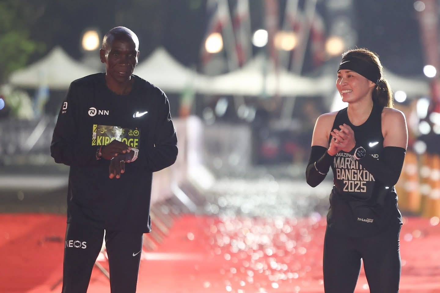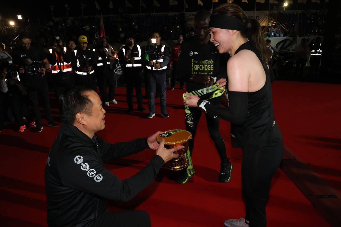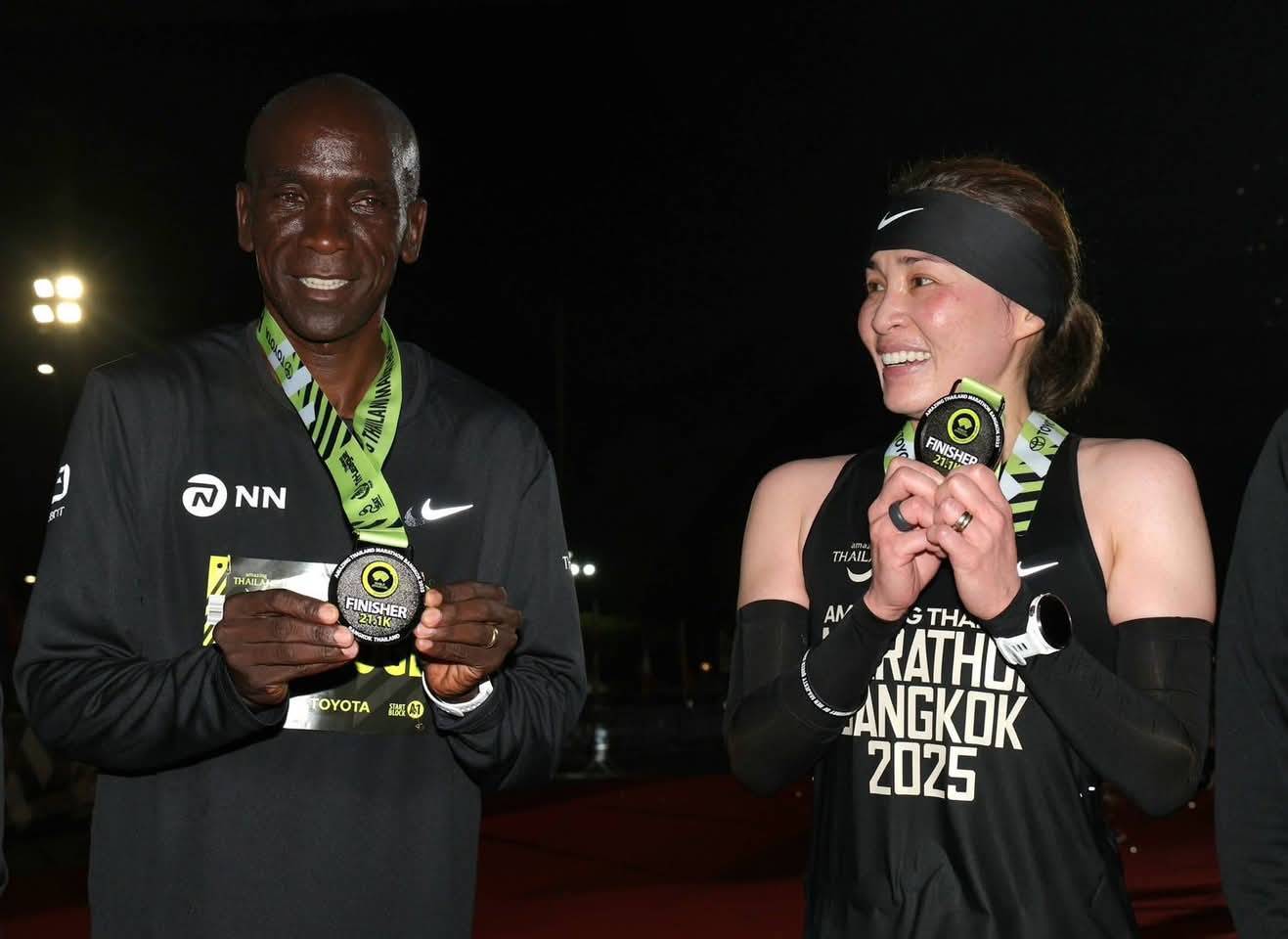 พระราชินี ทรงวิ่ง ฮาล์ฟมาราธอน ร่วมกับ เอเลียด คิปโชเก้ ทรงใช้เวลา ๒.๑๓ ชม. เข้าเส้นชัย