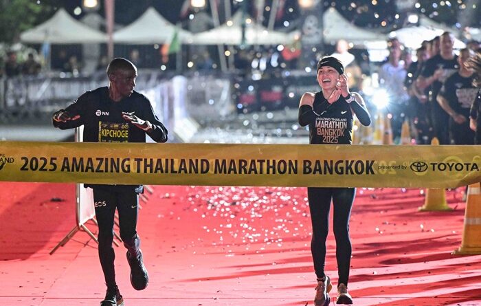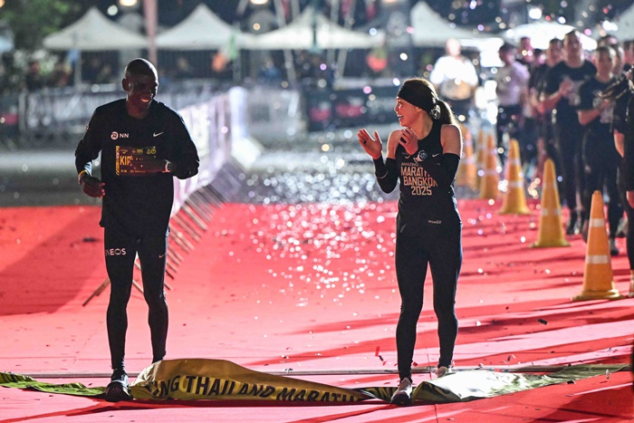 บรรยากาศการแข่งขัน “อะเมซิ่ง ไทยแลนด์ มาราธอน แบงค็อก พรีเซ็นต์บาย โตโยต้า ครั้งที่ ๘” ปีนี้เป็นไปอย่างคึกคักและสดชื่นเป็นพิเศษ ด้วยสภาพอากาศเย็นสบายเพียง ๑๕ องศาในช่วงเช้า ส่งผลให้เส้นทางการแข่งขันเต็มไปด้วยพลังและความมั่นใจของนักวิ่งจากทั่วโลก ด้วยอุณหภูมิที่เอื้ออำนวยช่วยให้นักวิ่งส่วนใหญ่รักษาจังหวะและเร่งสปีดได้ดีกว่าปกติ หลายคนทำเวลาได้ดีขึ้นอย่างเห็นได้ชัด ตลอดเส้นทางยังเต็มไปด้วยเสียงเชียร์และบรรยากาศของความสนุกสนาน และการแสดงโดรนเทิดพระเกียรติสุดประทับใจ จนทำให้นักวิ่งต่างยกให้งานนี้ให้เป็น “งานมาราธอนระดับโลกท่ามกลางลมหนาวแห่งความสำเร็จ” อย่างแท้จริง