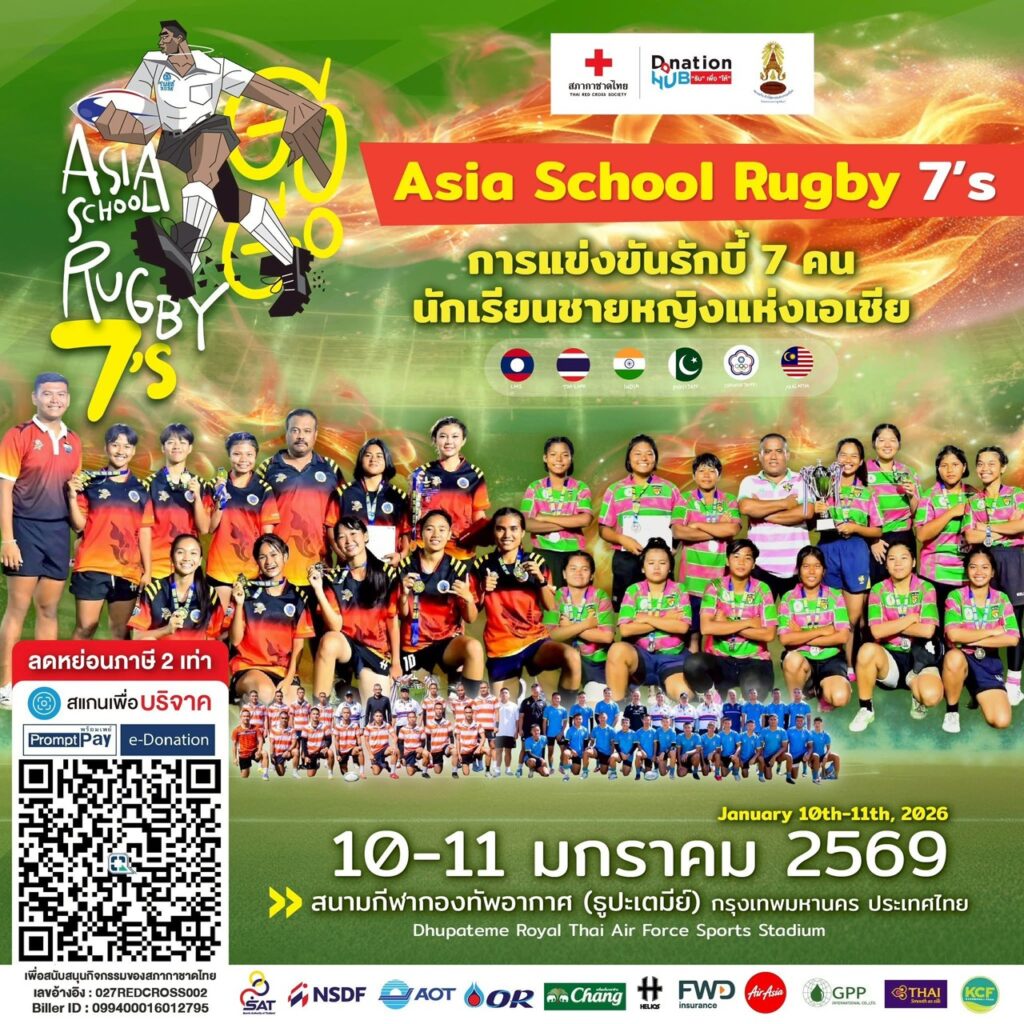 Donation HUB สภากาชาดไทย ร่วมกับ สมาคมกีฬารักบี้ฟุตบอลแห่งประเทศไทย ในพระบรมราชูปถัมภ์ จัดการแข่งขันรักบี้ฟุตบอล 7 คน นักเรียน ชาย – หญิง รอบชิงชนะเลิศแห่งเอเชีย เพื่อสภากาชาดไทย ชิงถ้วยพระราชทานสมเด็จพระกนิษฐา ธิราชเจ้า กรมสมเด็จพระเทพรัตนราชสุดาฯ สยามบรมราชกุมารี ในวันที่ 10 -11 มกราคม 2569 ณ สนามกีฬากองทัพอากาศ (ธูปะเตมีย์) เพื่อพัฒนาทักษะกีฬารักบี้ฟุตบอลในระดับเยาวชน พร้อมเปิดโอกาสให้นักกีฬาได้เข้าร่วมการแข่งขันในเวทีระดับนานาชาติ ควบคู่กับการสนับสนุนภารกิจด้านมนุษยธรรมของสภากาชาดไทย โดยรายได้จากการแข่งขันหลังหักค่าใช้จ่าย นำไปสมทบทุนเพื่อช่วยเหลือผู้ได้รับผลกระทบจากสถานการณ์ชายแดน