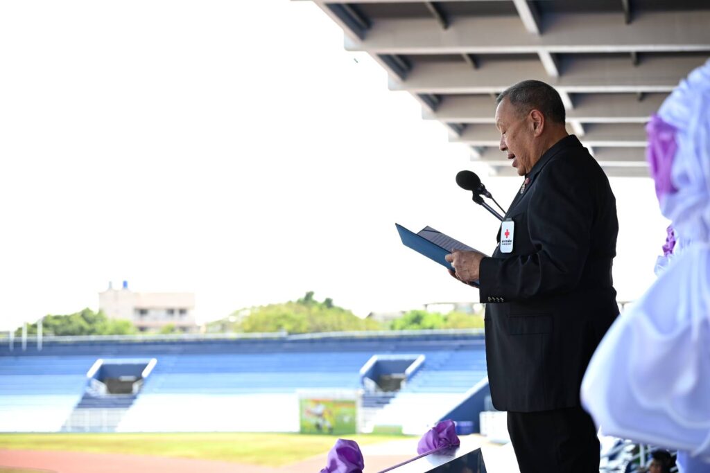 นายขรรค์ ประจวบเหมาะ ผู้อำนวยการสำนักงานจัดหารายได้ สภากาชาดไทย ประธานในพิธี กล่าวว่า “รู้สึกยินดีและเป็นเกียรติอย่างยิ่งที่ได้รับเชิญให้เป็นประธานในพิธีเปิดการแข่งขันรักบี้ฟุตบอล 7 คน นักเรียน ชาย–หญิง เพื่อสภากาชาดไทย รอบชิงแชมป์เอเชีย ซึ่งนับเป็นกิจกรรมที่มีคุณค่า ไม่เพียงส่งเสริมทักษะทางกีฬา เสริมสร้างวินัย ความสามัคคี และน้ำใจนักกีฬาให้แก่เยาวชน หากแต่ยังเป็นการแข่งขันเพื่อการกุศลที่มีวัตถุประสงค์ในการสมทบทุนสนับสนุนภารกิจของสภากาชาดไทย นำไปช่วยเหลือและบรรเทาความเดือดร้อนแก่ผู้ประสบภัยจากสถานการณ์ชายแดน พร้อมทั้งชื่นชมคณะกรรมการจัดการแข่งขัน ผู้ให้การสนับสนุนและผู้มีส่วนเกี่ยวข้องทุกฝ่าย ที่ร่วมแรงร่วมใจกันจัดการแข่งขันในครั้งนี้ พร้อมให้กำลังใจนักกีฬาทุกคน ที่ทำการแข่งขันด้วยความมุ่งมั่น เต็มความสามารถ ยึดมั่นในกติกา และแสดงออกถึงน้ำใจนักกีฬาอย่างแท้จริง”