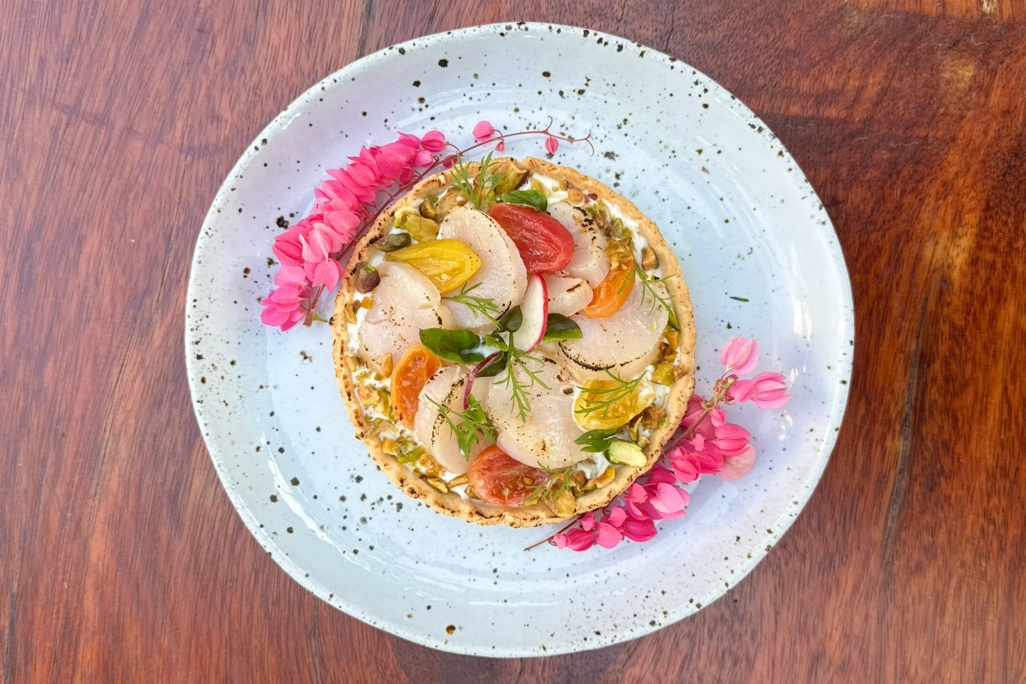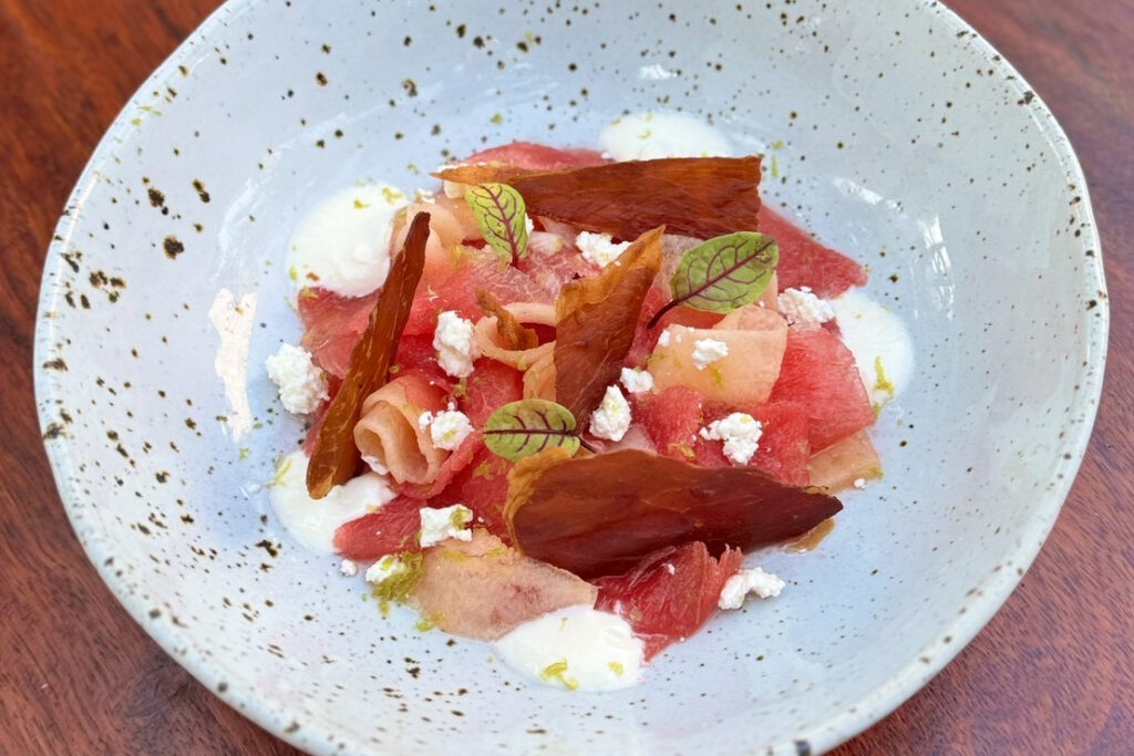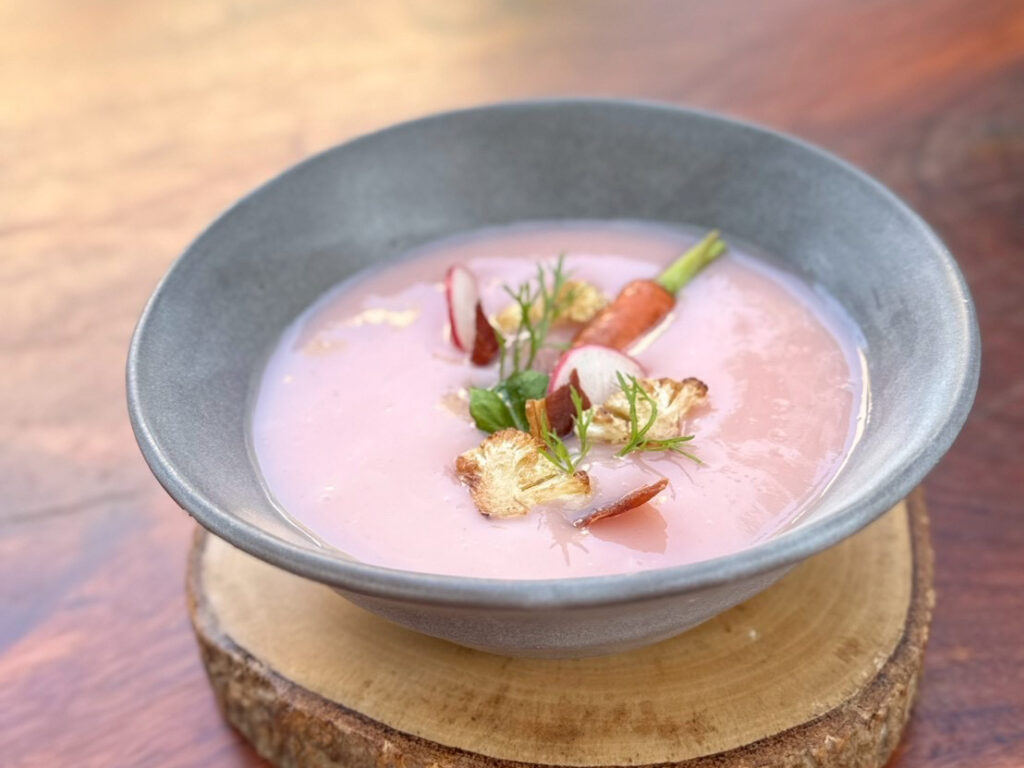 เริ่มต้นค่ำคืนแห่งความประทับใจด้วยเมนูเรียกน้ำย่อย Scallop Tart หอยเชลล์ฮอกไกโดคุณภาพพรีเมียม เสิร์ฟคู่ทาร์ตอัลมอนด์ ซอสอาโฮ บลังโก และมะเขือเทศดอง ต่อด้วยซุปรสละมุน Rose Soup ที่ผสานดอกกุหลาบ กะหล่ำดอก บีตรูต อัลมอนด์ และเบบี้แครอทอย่างลงตัว