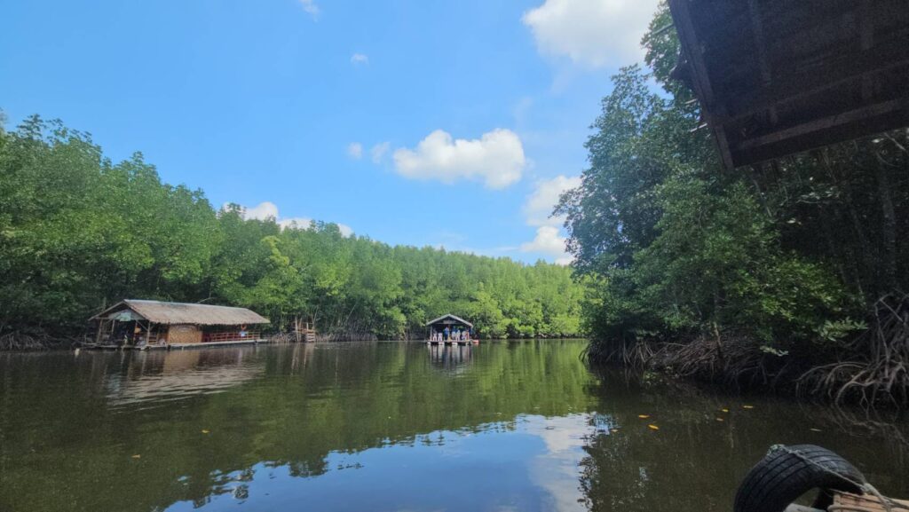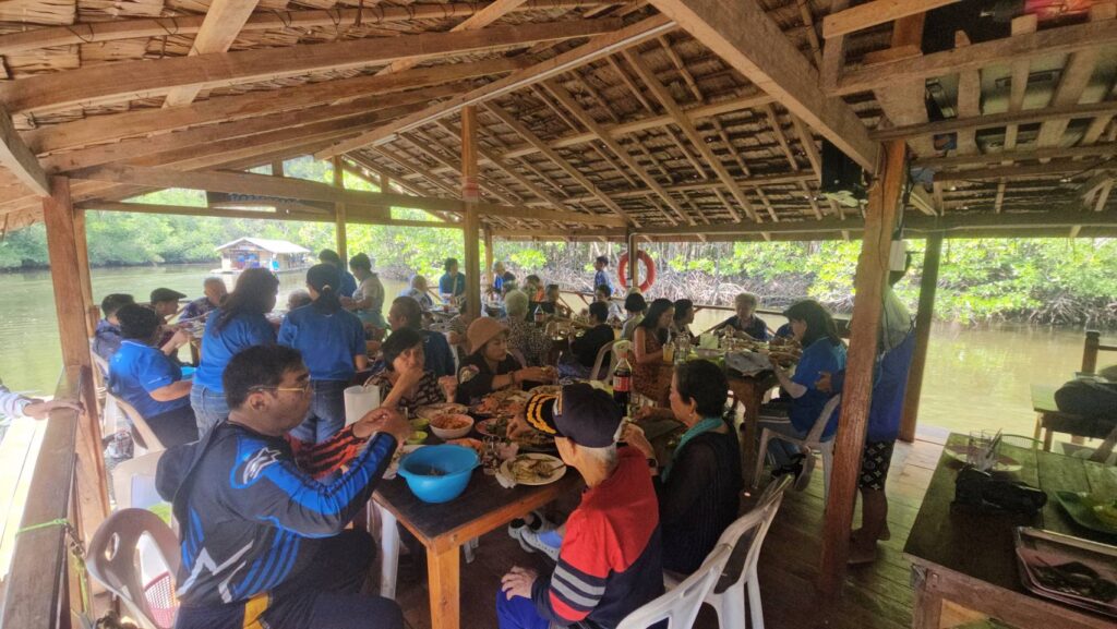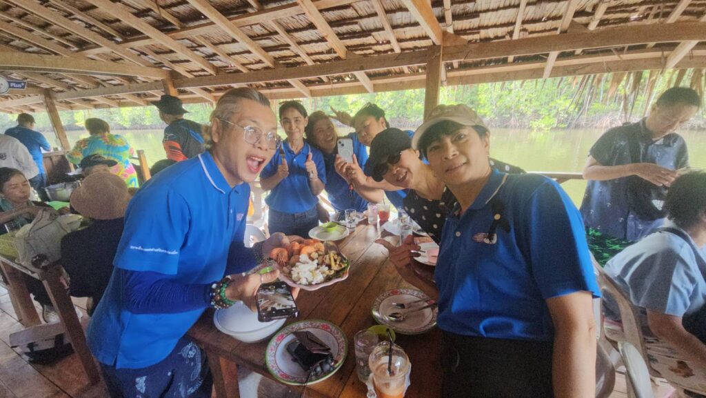 และสำหรับวันนี้ชาวชุมชนยิ้มปลื้มปริ่มเมื่อได้รับคณะจากกทม. กว่า 80 ชีวิต นำแพตีคู่กัน 2 แพ ล่องไปตามลำน้ำผ่านป่าชายเลน ป่าโกงกางผืนใหญ่สู่ท้องทะเล