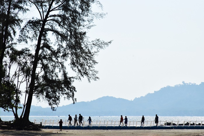 “ค่อย ๆ ทยอยก้าวลงนะครับ” หนุ่มน้อยลูกหลานคนแพ 2 – 3 คน ค่อย ๆ นำสะพานไม้เชื่อมเล็ก ๆ พาดต่อระหว่างแพ กับ ผืนทราย เพื่อให้เหล่าสมาชิกนักท่องเที่ยวได้เดินลงชายหาดกันได้อย่างสะดวกสบาย