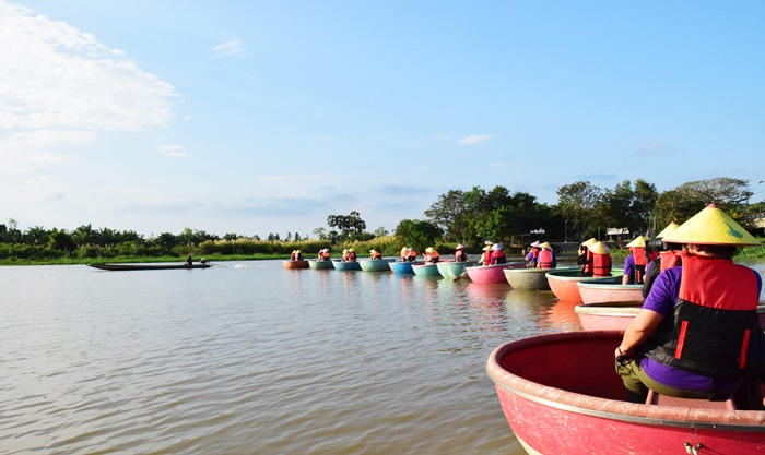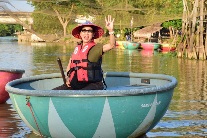 ช่วงบ่ายแก่ ๆ ของวัน คราวนี้ไปสนุกสนานกันต่อที่ กิจกรรมล่องเรือกระด้ง หนึ่งเดียวในไทย รถโค้ชขนาดใหญ่ของคณะเรามุ่งหน้าสู่คลองท่าสำเภา อำเภอเมือง เมื่อไปถึงเจ้าหน้าที่เตรียมเรือกระด้งเอาไว้คอยท่าเรียบร้อย โดยแบ่งออกเป็นสองกลุ่ม กลุ่มที่ต้องการสัมผัสกับบรรยากาศการลงเรือกระด้ง กับกลุ่มพี่ๆ สูงวัยกว่าที่อยากนั่งแพที่ตกแต่งเป็นเก๋งจีนในแบบชิล ๆ
