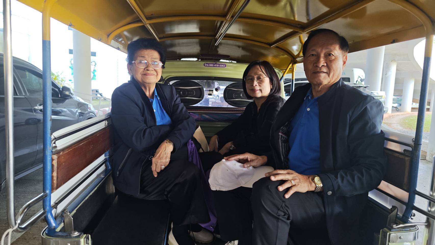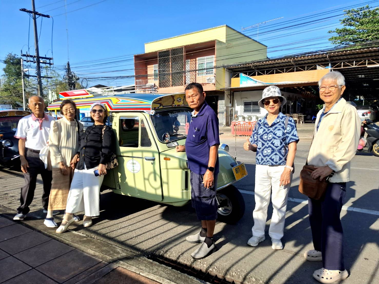 มาตรังก็หลายครั้ง ไม่ได้มีโอกาสนั่งรถตุ๊กตุ๊กหัวกบกับเขาเสียที คราวนี้มากรุ๊ปใหญ่ ทางชสท.และททท.ตรังจัดให้ โดยจัดกระบวนแถวกันมารับถึงบันไดหน้าโรงแรมเรือรัษฎา ตรัง รถตุ๊กตุ๊กหัวกบ จำนวนยี่สิบกว่าคันเรียงรายรอรับคณะ ที่กระโดดขึ้นบ้าง ปีนขึ้นบ้าง ถัดขึ้นบ้าง (ตามวัย) เรียกเสียงเฮฮาตั้งแต่รถยังไม่ทันเคลื่อนขบวน