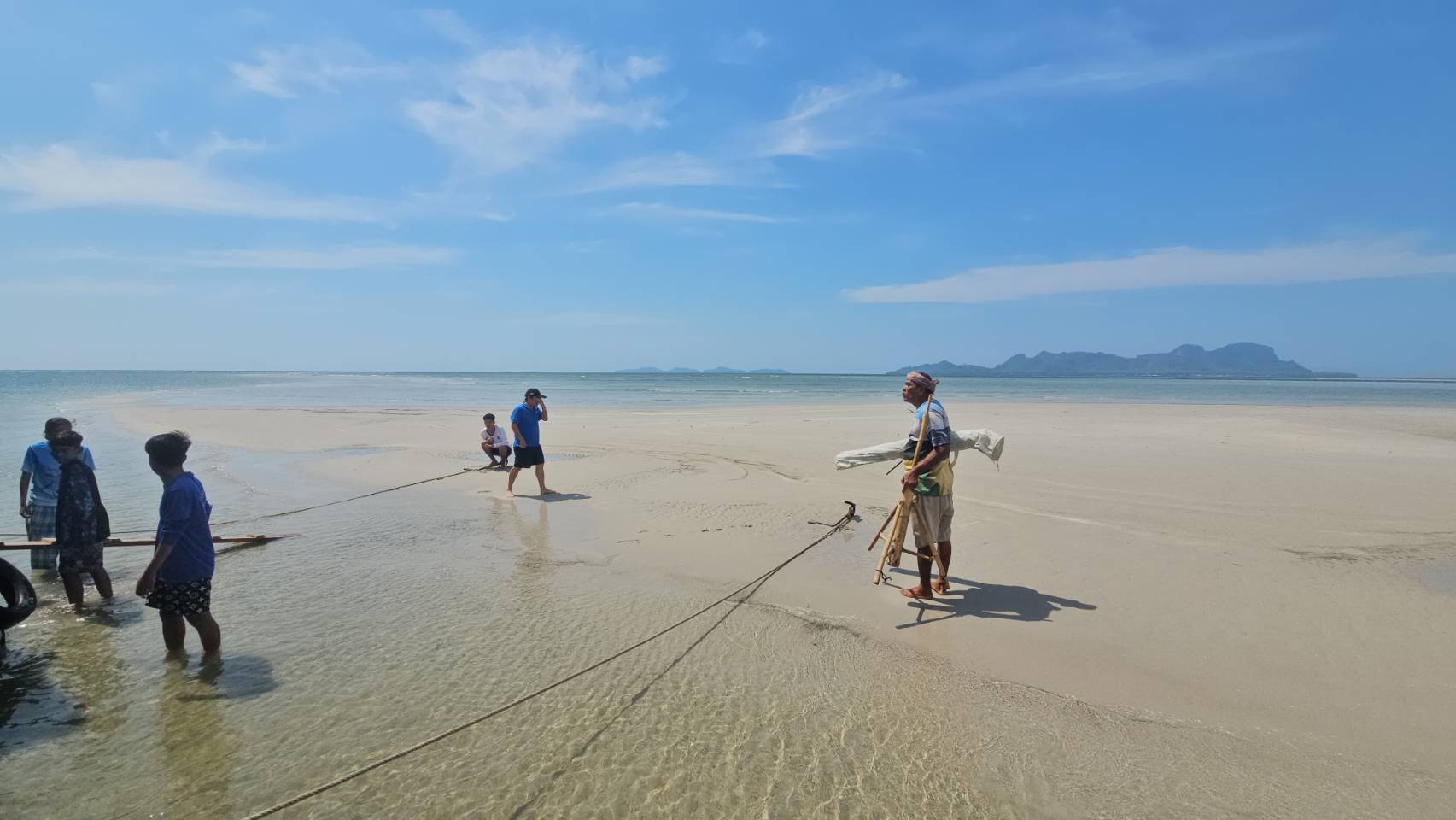 “ค่อย ๆ ทยอยก้าวลงนะครับ” หนุ่มน้อยลูกหลานคนแพ 2 – 3 คน ค่อย ๆ นำสะพานไม้เชื่อมเล็ก ๆ พาดต่อระหว่างแพ กับ ผืนทราย เพื่อให้เหล่าสมาชิกนักท่องเที่ยวได้เดินลงชายหาดกันได้อย่างสะดวกสบาย