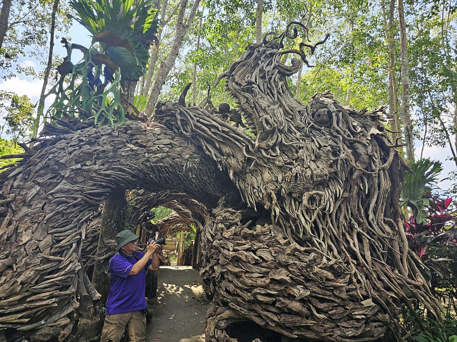 นอกจากจะเป็นการนำไม้มงคลมาขยายการเรียนรู้แล้ว ด้วยความบากบั่น เพียรนำซากไม้และราก มาสร้างเป็นมังกรหลายขนาด ตั้งแต่ตัวแรกจนถึงตัวที่ 88 โดยมังกรตัวที่ 87 เป็นมังกรแม่คือมังกรน้ำให้น้ำกับโลกมนุษย์ เพื่อไม่ให้เกิดภัยแล้ง ไม่ให้เกิดอุกภัย ส่วนมังกรตัวที่ 88 เป็นมังกรเพศผู้ เป็นมังกรไม้ที่สร้างขึ้นใหญ่ที่สุดในประเทศไทยและใหญ่ที่สุดในโลกก็ว่าได้ มังกรตัวนี้ บ่งบอกถึงพลังอำนาจของแผ่นดิน และที่ได้รับความสนใจอีกจุดหนึ่งคืออุโมงค์มังกรที่นำเลข ๙ บรรจงไว้บนเหนือหัวมังกร