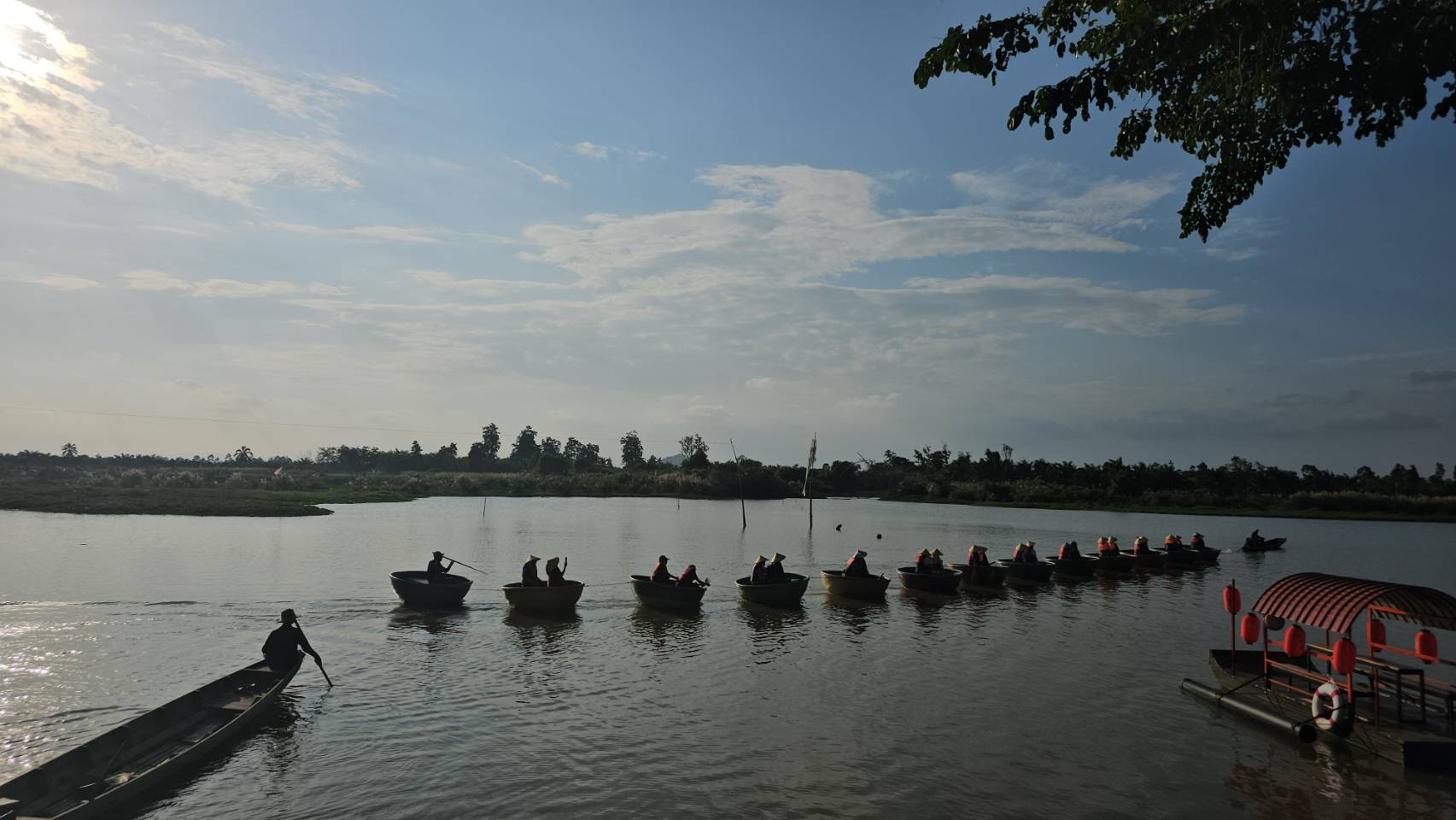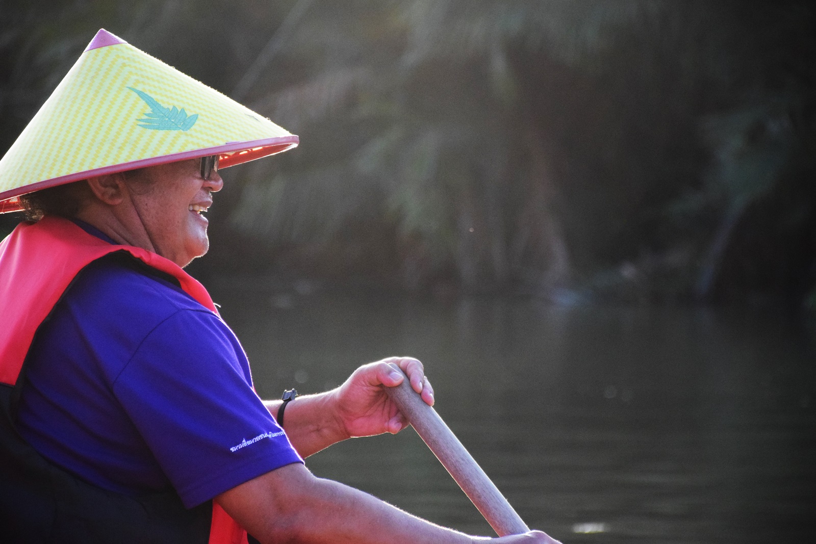 ช่วงบ่ายแก่ ๆ ของวัน คราวนี้ไปสนุกสนานกันต่อที่ กิจกรรมล่องเรือกระด้ง หนึ่งเดียวในไทย รถโค้ชขนาดใหญ่ของคณะเรามุ่งหน้าสู่คลองท่าสำเภา อำเภอเมือง เมื่อไปถึงเจ้าหน้าที่เตรียมเรือกระด้งเอาไว้คอยท่าเรียบร้อย โดยแบ่งออกเป็นสองกลุ่ม กลุ่มที่ต้องการสัมผัสกับบรรยากาศการลงเรือกระด้ง กับกลุ่มพี่ๆ สูงวัยกว่าที่อยากนั่งแพที่ตกแต่งเป็นเก๋งจีนในแบบชิล ๆ