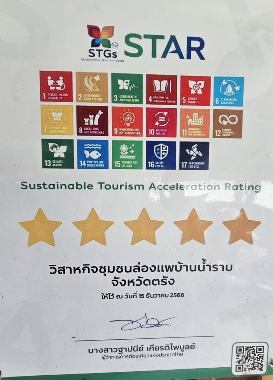 ถือเป็นหนึ่งในกิจกรรมที่ต้องบอกเลยว่า ดีมาก ๆ นอกจากจะได้ช่วยเหลือชุมชน สัมผัสกับวิถีชุมชนแล้ว ยังทำให้นักท่องเที่ยวได้สัมผัสกับความงดงามทางธรรมชาติ ได้ทานอาหารรสชาติเดียวกับคนพื้นถิ่น ได้อิ่มอร่อยกับอาหารทะเลสดๆ ได้เห็นรอยยิ้มและอัธยาศัยไมตรีที่ดีเยี่ยมจากชาววิสาหกิจชุมชนบ้านน้ำราบแห่งนี้ ต้องบอกว่า ขอปรบมือให้ดัง ๆ สมแล้วกับรางวัลสถานที่ท่องเที่ยวระดับห้าดาวที่ได้รับจากการท่องเที่ยวแห่งประเทศไทย ที่มีลายเซ็นต์ ผู้ว่า ฯ ททท. คุณกลาง – ฐาปนีย์ เกียรติไพบูลย์ การันตีในประกาศนียบัตรใบโตนี้ด้วย