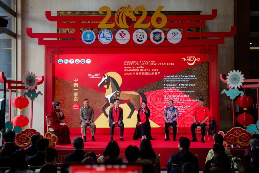 เมื่อวันที่ 5 กุมภาพันธ์ 2569 ที่ผ่านมา ณ ห้องโถงธนะรัชต์ ททท. สำนักงานใหญ่ นางสาวฐาปนีย์ เกียรติไพบูลย์ ผู้ว่าการการท่องเที่ยวแห่งประเทศไทย นายหยาง เสี่ยวหลง ที่ปรึกษาฝ่ายวัฒนธรรมสถานเอกอัครราชทูตสาธารณรัฐประชาชนจีนประจำประเทศไทย การท่องเที่ยวแห่งประเทศไทย (ททท.) พร้อมด้วยว่าที่ร้อยตรีศราวุธ จันทวงศ์ รองผู้ว่าราชการจังหวัดนครสวรรค์ นายกองเอกเชษฐา ขาวประเสริฐ รองผู้ว่าราชการจังหวัดสุพรรณบุรี พลตำรวจตรี กฤษณ์ วาฤทธิ์ รองผู้บัญชาการตำรวจท่องเที่ยว ร่วมแถลงข่าวการจัดงานเทศกาลตรุษจีนประเทศไทย ประจำปี 2569 (Amazing Thailand Happy Chinese New Year 2026) เชิญชวนฉลองปีม้าทองอย่างยิ่งใหญ่ ตอกย้ำมิตรภาพไทย–จีน 51 ปี กับ 2 พื้นที่จัดงานหลัก ได้แก่ กรุงเทพฯ และอำเภอหาดใหญ่ จังหวัดสงขลา พร้อมเสริมทัพสนับสนุนการจัดงานในนครสวรรค์และสุพรรณบุรี