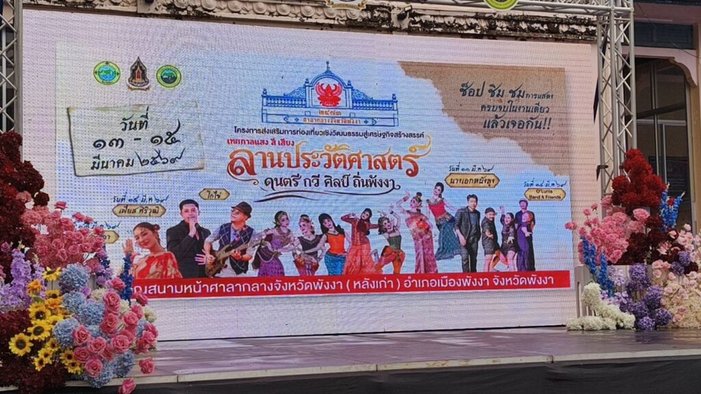ผู้สื่อข่าวรายงาน ที่สนามหน้าศาลากลางจังหวัดพังงา(หลังเก่า) อ.เมือง จ.พังงา นายสราวุฒิ ธนาเจริญสกุล รองผู้ว่าราชการจังหวัดพังงา ประธานการแถลงข่าว พร้อมด้วย น.ส.อุไรวรรณ วัฒนธรรมจังหวัดพังงา ดร.จุมพล ทองตัน ประธานสภาวัฒนธรรมจังหวัดพังงา นางพิศมัย วงศ์แก้ว ท่องเที่ยวและกีฬาจังหวัดพังงา น.ส.เกษศิรินทร์อภิรัตนวงศ์ ปชส.พังงา ร่วมกันแถลงข่าวโครงการส่งเสริมการท่องเที่ยวเชิงวัฒนธรรมสู่เศรษฐกิจสร้างสรรค์ เทศกาลแสงสีเสียงลานประวัติศาสตร์ดนตรีกวีศิลป์ถิ่นพังงาในระหว่างวันที่ 13-15 มีนาคม 2569 ณ บริเวณสนามหน้าศาลากลางจังหวัดพังงา(หลังเก่า) อ.เมือง จ.พังงา