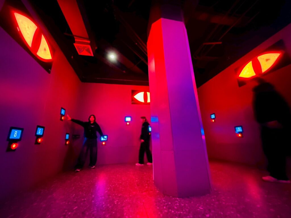 ห้อง Asteroid Strike ปาให้แม่น ยิงให้โดน เกมปาเป้าที่ท้าทายความแม่นยำขั้นสูง ผนังเต็มไปด้วยแป้นหกเหลี่ยมที่พร้อมทดสอบทักษะการเล็งของคุณในทุกจังหวะ ห้อง EYE IN THE SKY เกมเอาตัวรอดแบบทีมเวิร์ก ใครพลาด…อาจโดนจับ!! คล้ายกับ Squid Game ซีรีส์ดัง โดยเป็นภารกิจสุดระทึกที่ต้องอาศัยความไว สายตา ความจำ และกลยุทธ์ทีม ลูกตาเอเลี่ยนจะเปลี่ยนเป็นสีแดงเมื่อพร้อมล่า แอบให้ดี ยืนให้เนียน วิ่งให้ไว เพื่อพาทีมรอดไปด้วยกัน ห้อง Space Hoop ชู้ตลูกบาสให้ลงห่วง ทดสอบความแม่น และ ยังมีอีกหลายห้องที่รอให้ทุกคนเปิดประตูสู่ความสนุก