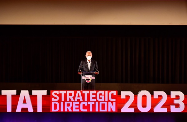 การท่องเที่ยวแห่งประเทศไทย (ททท.) แถลงแผนเพื่อสื่อสารทิศทางและแนวทางการส่งเสริมตลาดท่องเที่ยวของ ททท. ประจำปี 2566 ในรูปแบบผสมผสาน (Hybrid Meeting) โดยมี นายพิพัฒน์ รัชกิจประการ รัฐมนตรีว่าการกระทรวงการท่องเที่ยวและกีฬา ศาสตราจารย์พิเศษ ดร.ทศพร ศิริสัมพันธ์ ประธานกรรมการ ททท. คณะกรรมการ ททท. ผู้บริหาร ททท. และผู้ประกอบการในอุตสาหกรรมท่องเที่ยว ร่วมงาน ณ ศูนย์การค้าเซ็นทรัลเวิล์ด ททท. ย้ำเดินหน้า “พลิกฟื้น” ภาคอุตสาหกรรมท่องเที่ยวไทยทั้งระบบ วางกลยุทธ์กระตุ้นความต้องการเดินทาง (Drive demand) สร้างประสบการณ์การเดินทางที่มีความหมายและทรงคุณค่าให้กับนักท่องเที่ยว (Meaningful Travel) ควบคู่ไปกับการต่อยอดพัฒนาห่วงโซ่อุปทาน (Shape supply) มุ่งสู่ความสมดุลทุกมิติ พร้อมยกระดับอุตสาหกรรมท่องเที่ยวไทยสู่การเติบโตอย่างยั่งยืน (High value and sustainability) ตั้งเป้ารายได้ปี 2566 รวม 2.38 ล้านล้านบาท (Best Case Scenario)นายยุทธศักดิ์ สุภสร ผู้ว่าการ ททท. กล่าวว่า ปี 2566 ที่กำลังจะมาถึง จะเป็นปีแห่งการเริ่มต้นและพลิกฟื้นอุตสาหกรรมท่องเที่ยวไทย โดย ททท. กำหนดทิศทางการตลาดให้สอดคล้องกับแผนวิสาหกิจองค์กร ททท. พ.ศ.2566 – 2570 ภายใต้วิสัยทัศน์ “ททท. เป็นผู้ขับเคลื่อนยุทธศาสตร์การท่องเที่ยวไทยในการสร้างประสบการณ์ทรงคุณค่ามุ่งสู่ความยั่งยืน” เตรียมยกระดับมาตรฐานอุตสาหกรรมท่องเที่ยวเพื่อฟื้นฟูในทุกมิติ ตาม 3 วัตถุประสงค์เชิงยุทธศาสตร์หลัก (Strategic Objective) ได้แก่ Drive Demand : มุ่งเน้นการท่องเที่ยวเชิงคุณภาพอย่างยั่งยืน Shape Supply : สร้างคุณค่าและยกระดับอุตสาหกรรมท่องเที่ยว ผ่านการสร้างระบบนิเวศด้านการท่องเที่ยวใหม่ (New Tourism Ecosystem) และ Thrive for Excellence : ยกระดับองค์กรสู่องค์กรสมรรถนะสูง มุ่งสู่การเป็น Data Driven Organization เพื่อเพิ่มขีดความสามารถในการแข่งขันด้านการตลาด สู่หมุดหมายของการพัฒนาการท่องเที่ยวไทยเปลี่ยนผ่านสู่ High Value & Sustainable Tourism อย่างแท้จริง โดย ททท. จะกระตุ้นความต้องการเดินทางท่องเที่ยวของนักท่องเที่ยวคนไทยและต่างชาติ (Drive demand) สร้างประสบการณ์การเดินทางที่มีความหมายและทรงคุณค่าให้กับนักท่องเที่ยว (Meaningful Travel) ตามแคมเปญการสื่อสารต่างประเทศ Visit Thailand Year 2022-2023 : Amazing New Chapters ด้วยเมนูประสบการณ์ A-Z และผสมผสาน Soft Power of Thailand (5F : 4M คือ Food Film Fashion Festival Fight Music Museum Master Meta ) และ “เที่ยวเมืองไทย Amazing ยิ่งกว่าเดิม” สำหรับแคมเปญการสื่อสารในประเทศ ควบคู่ไปกับการปรับ ต่อยอด และพัฒนาห่วงโซ่อุปทาน (Shape supply) สร้างระบบนิเวศด้านการท่องเที่ยวใหม่ (New Tourism Ecosytem) ที่สมดุลใน 4 มิติ (4Ws) ทั้งด้านเศรษฐกิจ (Economic Wealth) สังคม (Social Wellbeing) สิ่งแวดล้อม (Environmental Wellness) และเสริมสร้างภูมิปัญญามนุษย์ (Human Wisdom)